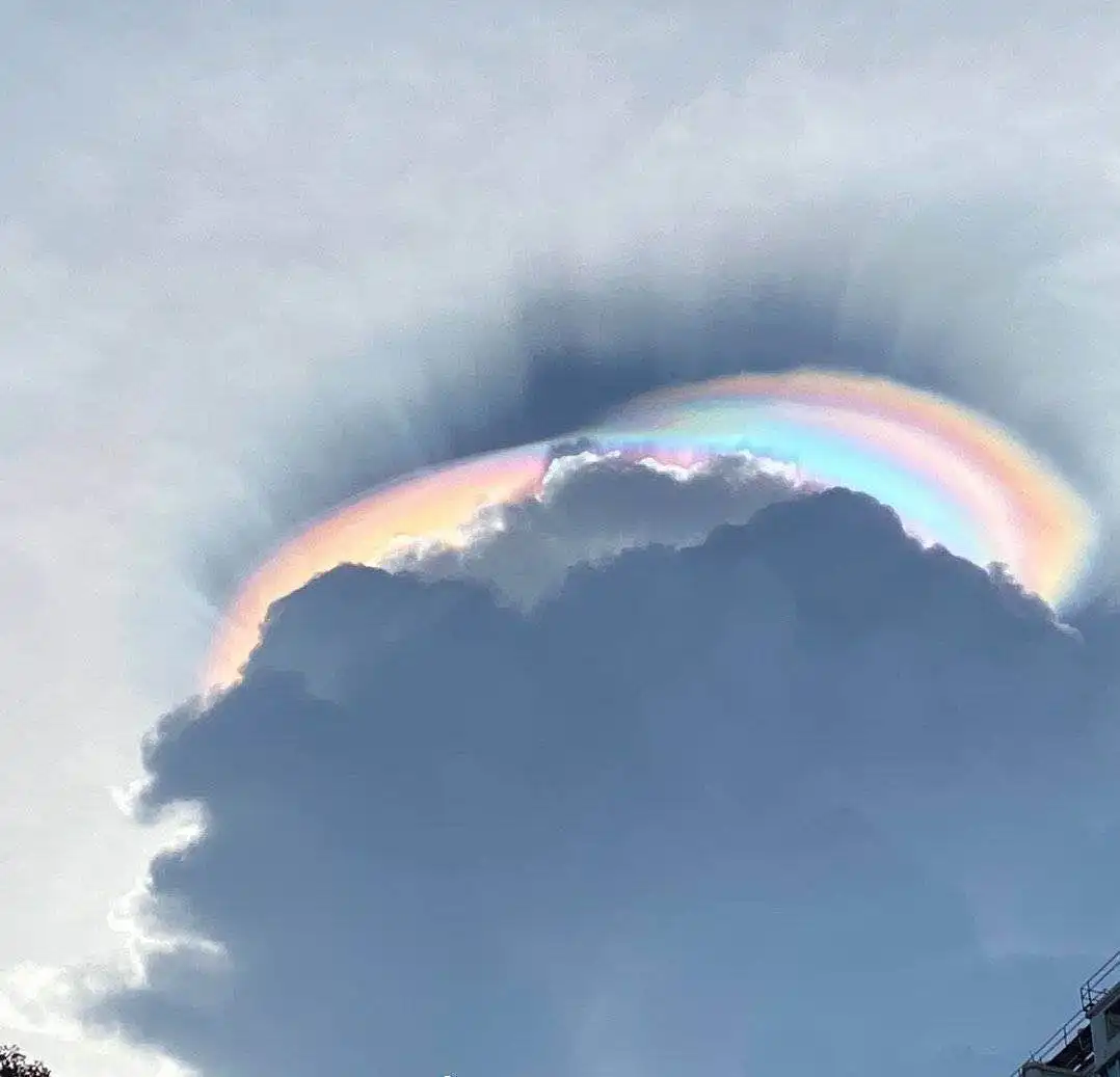 这种云层非常罕见,有时即便出现幞状云也不会形成虹彩,主要是和太阳的位置有关,多出现在我国南方太阳快落山时。
