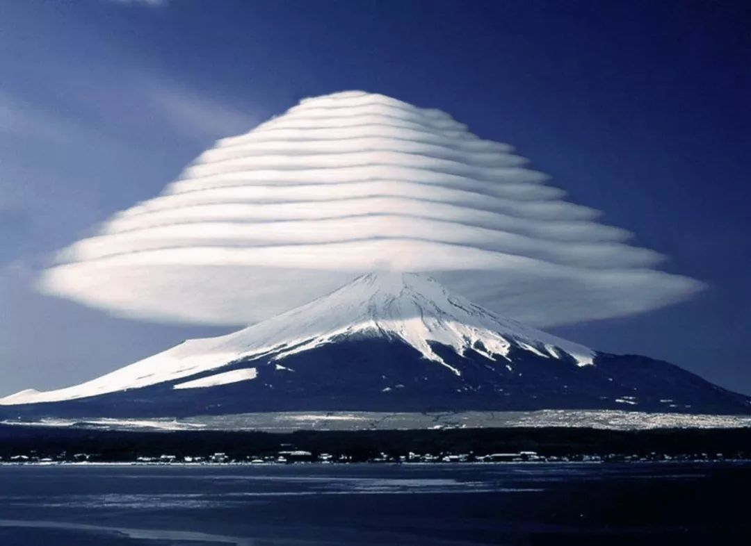 帽子云:这种云朵出现在高山上,在经过高山时,因为热力差异的原因而隆起,犹如高山的一顶帽子。其中层数越多的“帽子云”越罕见。